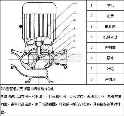 GW管道式排污泵結構圖: