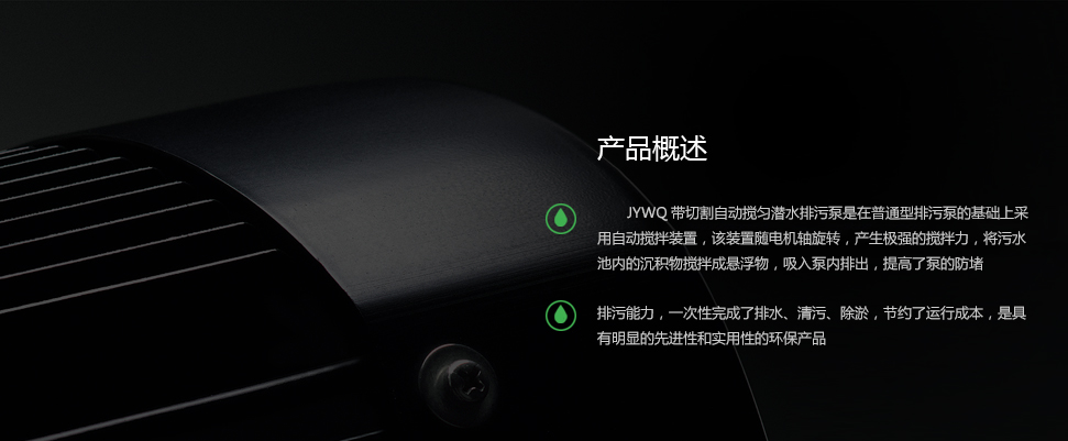 JYWQ自動攪勻無堵塞排污泵是在普通型排污泵的基礎上采用自動攪拌裝置,該裝置隨電機軸旋轉,產生極強的攪拌力,將污水池內的沉積物攪拌成懸浮物,吸入泵內排出,提高了泵的防堵、排污能力