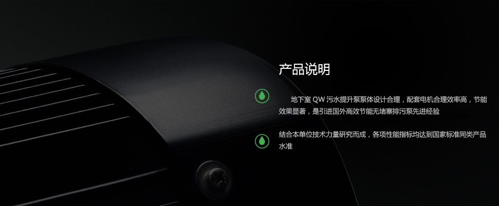 QW排污水系列潛污泵設計合理,配套電機合理,效率高,節能效果顯著,是引進國外高效節能無堵塞排污泵先進經驗,結合本單位技術力量研制而成,各項性能指標均達到國家標準同類產品水平