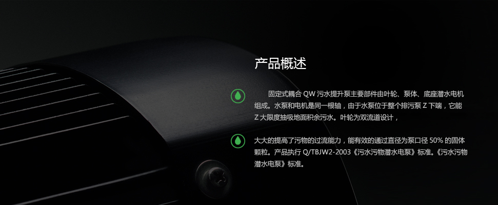WQ固定式高效節(jié)能排污泵使用于工廠商業(yè)嚴重污染廢水的排放、住宅區(qū)的污水排污站、城市污水處理廠排水系統(tǒng)、人防系統(tǒng)排水站、自來水廠的給水裝置,醫(yī)院、賓館的污水排放、市政工程筑工地、勘探、礦山配套附機、農村沼氣池、農田灌溉等行業(yè),輸送帶顆粒的污水、污物,也可用于清水及帶腐蝕性介質。WQ固定式高效節(jié)能排污泵適用范圍
