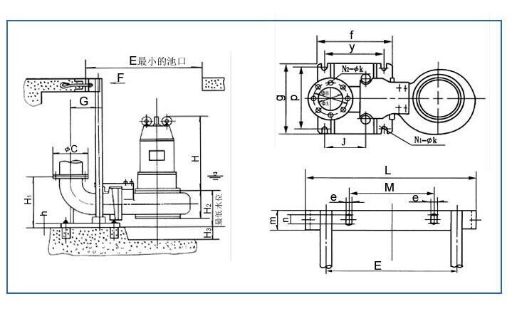 將出水管固定在污水池的底部,在池頂安裝配套的支撐件,用雙內導軌使泵的出口與出水管自動對正。獨特設計的出口連接確保了在泵和底座之間的連接處絕無泄漏。此安裝方式可避免檢修時工作人員進入污水池,既保護了環(huán)境,又降低了維修成本與工人強度。